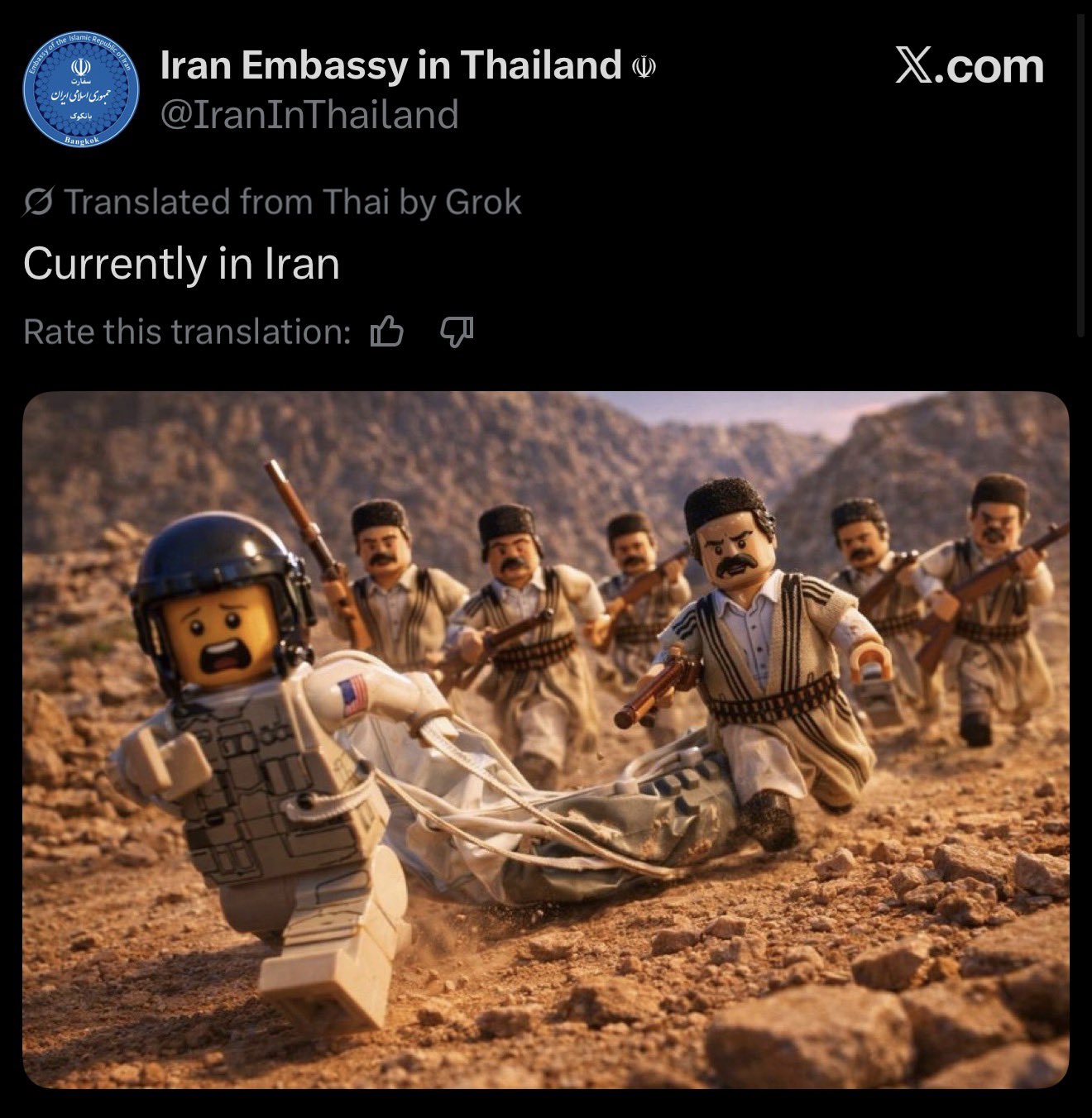 Στην ανάρτηση η πρεσβεία του Ιράν χρησιμοποιεί Lego για να απεικονίσει την επιχείρηση αναζήτησης του Αμερικανού πιλότου.