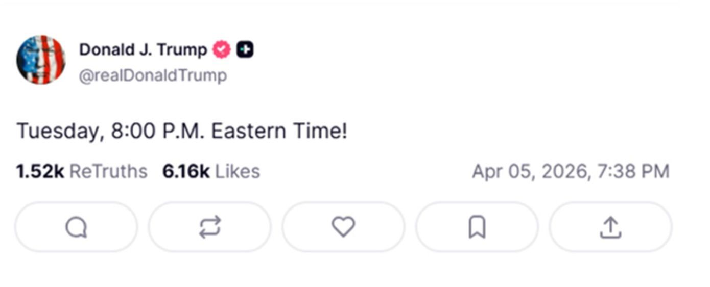 Και ανάμεσα σε όλες αυτές τις συνεντεύξεις βρήκε χρόνο για να δώσει νέα παράταση στο Ιράν με ανάρτησή του στο Truth Social: «20:00 την Τρίτη» ήτοι, στις 3 τα ξημερώματα της Τετάρτης, ώρα Ελλάδας.