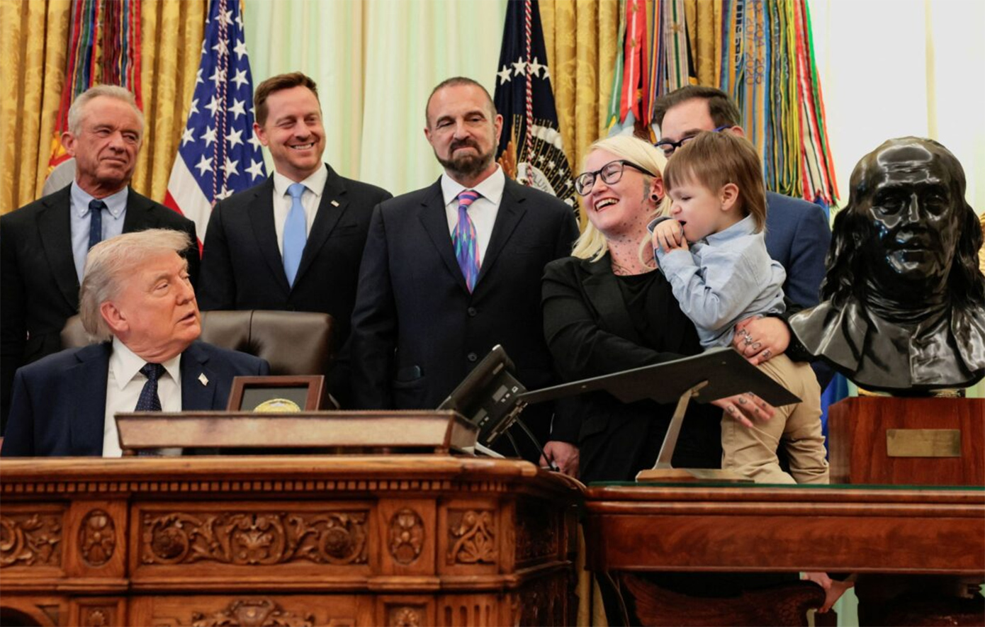 Ο Ντόναλντ Τραμπ χαρακτήρισε την περίπτωση «πραγματικά εντυπωσιακή», τονίζοντας: «Ήταν 100% κωφός, αλλά μετά τη θεραπεία μπορεί πλέον να ακούει τη μητέρα του να του λέει “σ’ αγαπώ”».