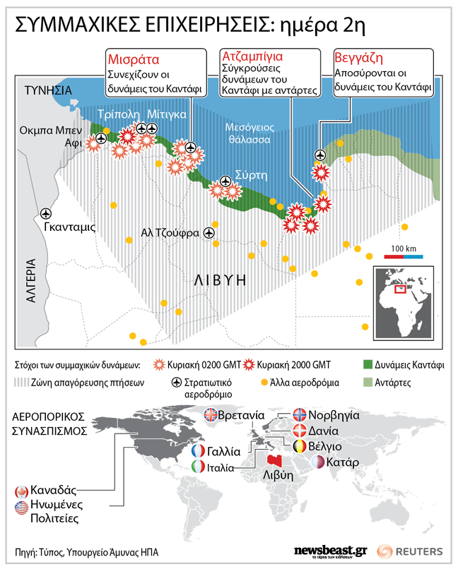 «Είπαμε σαφώς από την αρχή ότι δεν θα συμμετάσχουμε» σε αυτές τις ενέργειες του διεθνούς συνασπισμού, δήλωσε στους δημοσιογράφους προσερχόμενος στη σύνοδο των υπουργών Εξωτερικών της Ευρωπαϊκής Ένωσης, «Αυτό σημαίνει ότι εκτιμούμε ότι υπάρχουν κίνδυνοι… και όταν ακούμε αυτά που δήλωσε χθες ο Αραβικός Σύνδεσμος, δυστυχώς διαπιστώνουμε ότι είχαμε λόγους για να ανησυχούμε».