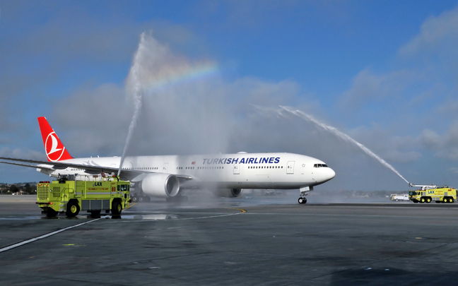 Λίγες μόνο ώρες πριν το γκαλά, το αεροδρόμιο του Λος Άντζελες είχε υποδεχθεί το πρώτο αεροπλάνο της THY, με την καθιερωμένη ρήψη νερού και το κόψιμο της κόκκινης κορδέλας από τον πρόεδρο Hamdi Topcu.