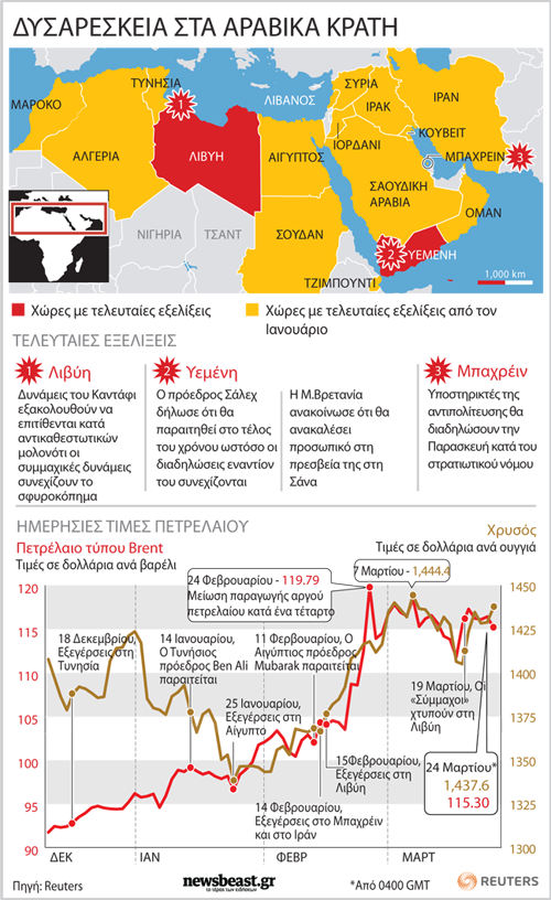 Ιδιαίτερο ενδιαφέρον παρουσιάζει η κατάσταση που επικρατεί αυτή τη στιγμή στις αραβικές χώρες, καθώς και οι επιπτώσεις που έχει η αναταραχή στις τιμές του πετρελαίου.