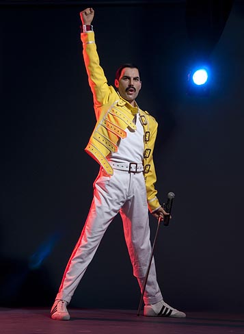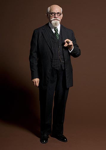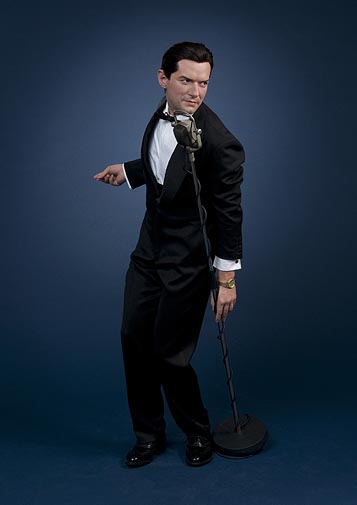 Ο Φίσερ φωτογραφήθηκε δίπλα στο κέρινο ομοίωμά του που ήταν ντυμένο όπως ο ίδιος, με σκούρο κουστούμι και κόκκινη γραβάτα.