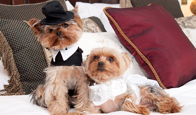 Η νύφη φορούσε ένα λευκό νυφικό με 1.800 κρύσταλλα Swarovski και ένα κολιέ από μαργαριτάρια. Ο γαμπρός ήταν κομψός φορώντας ένα σμόκιν. Ποιο ήταν το περίεργο του γάμου αυτού; Ότι παντρεύονταν σκυλιά! Η Louise Harris από το Essex έδωσε 20 χιλιάδες δολάρια(!), ώστε να ενώσει με τα δεσμά του γάμου τη σκυλίτσα της με ένα άλλο σκύλο.