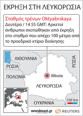 Η έκρηξη που σημειώθηκε το απόγευμα σε σταθμό του μετρό στην πρωτεύουσα της Λευκορωσίας, Μινσκ, προκάλεσε το θάνατο έντεκα πολιτών και τον τραυματισμό περίπου άλλων 100, σύμφωνα με νεότερο απολογισμό, που μετέδωσε το πρακτορείο Ιντερφάξ, επικαλούμενο τον πρόεδρο Αλεξάντερ Λουκασένκο.