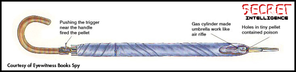 Η ομπρέλα αυτή χρησιμοποιήθηκε από έναν Βούλγαρο μυστικό πράκτορα στο Λονδίνο, για να σκοτώσει τον Βούλγαρο αντιφρονούντα Georgi Markov το 1978. Ένα πρότυπο ομπρέλας τροποποιήθηκε εσωτερικά για να εμποτίζει με δηλητήριο το στόχο. Στην περίπτωση Markov, ο ομπρέλα περιείχε ένα σφαιρίδιο ρικίνης, η οποία είναι σχεδόν αδύνατο να εντοπισθεί.
