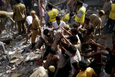 Διασώστες ψάχνουν για πτώματα ύστερα από την κατάρρευση κτιρίου που σημειώθηκε σήμερα στο Μπραχμαπούρι κοντά στο Ουσμανπούρ, στα περίχωρα του Νέου Δελχί. Σύμφωνα με τα τοπικά ΜΜΕ, έξι μέλη μιας οικογένειας, μεταξύ των οποίων τρεις γυναίκες, σκοτώθηκαν όταν το διώροφο κτήριο, στο οποίο διέμεναν, κατέρρευσε τις πρώτες πρωινές ώρες.