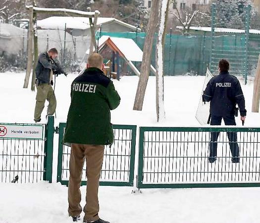 Όπως ανακοίνωσε σήμερα η αστυνομία του Βερολίνου οι αστυνομικοί, μέλη μιας περιπολίας, παρενέβησαν και πυροβόλησαν το σκυλί και το σκότωσαν. Όμως μία αδέσποτη σφαίρα διαπέρασε την πόρτα, που προστάτευε από το σκυλί την γυναίκα, και κατέληξε στο βραχίονά της.