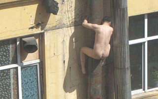 Διάσημος από τη μια στιγμή στην άλλη έγινε ο ιδιοκτήτης οίκου ανοχής στην ανατολική Κίνα που εθεάθη να σκαρφαλώνει γυμνός στους σωλήνες του κτιρίου για να ανέβει στην ταράτσα.