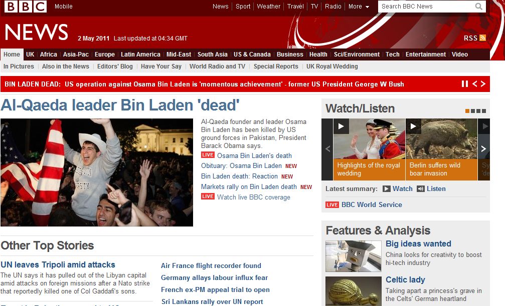 Δείτε εδώ όλες τις ειδήσεις για το θάνατο του Οσάμα Μπιν Λάντεν