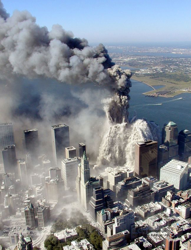 Αλλά η τραγωδία στο Παγκόσμιο Κέντρο Εμπορίου δεν έχει τελειώσει. Με διαφορά λίγων λεπτών, καταρρέουν διαδοχικά οι δίδυμοι πύργοι και ένα τεράστιο σύννεφο σκόνης καλύπτει τον ουρανό του Μανχάταν. Χιλιάδες άνθρωποι βρίσκουν τραγικό θάνατο κάτω από τόνους τσιμέντου.