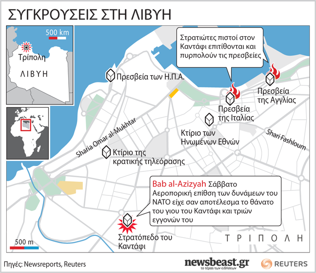 Αντεπιτέθηκε ο Λίβυος ηγέτης, Μουαμάρ Καντάφι, εξαπολύοντας νέες επιθέσεις εναντίον των εξεγερμένων στη Λιβύη, αφού επέζησε της επίθεσης του ΝΑΤΟ, η οποία είχε ως αποτέλεσμα να σκοτωθεί ένας γιος του και τρία εγγόνια του.