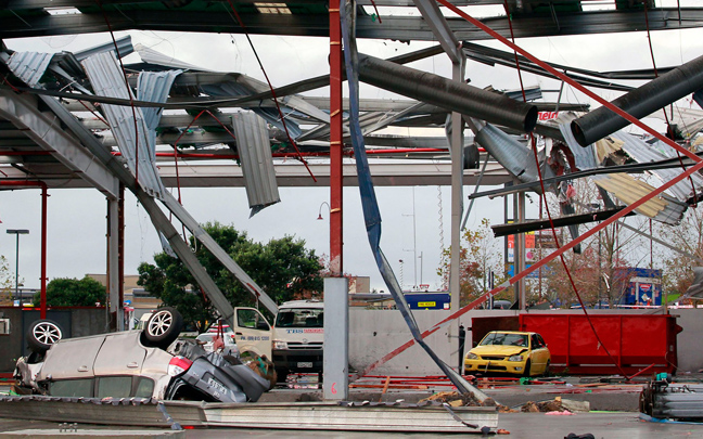Το Όκλαντ, τη μεγαλύτερη πόλη της Νέας Ζηλανδίας, χτύπησε σήμερα ανεμοστρόβιλος με αποτέλεσμα να σκοτωθεί ένας άνθρωπος και να τραυματιστούν πολλοί άλλοι, ενώ αυτόπτες μάρτυρες μιλούσαν για ένα γκρίζο περιστροφικό κύμα από αέρα και σύννεφα που αναποδογύρισε αυτοκίνητα, ενώ και οι στέγες αρκετών κτιρίων ξηλώθηκαν, όπως αυτή του πολυκαταστήματος «Mega Center».