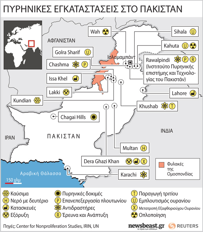 Ιδιαιτέρως αποκαλυπτικό είναι το γράφημα τους ειδησεογραφικού πρακτορείου Reuters για τα πυρηνικά που διαθέτει το Πακιστάν, καθώς πρόκειται για μία από τις χώρες που ποτέ δεν έχουν παραδεχτεί την ύπαρξή τους.
