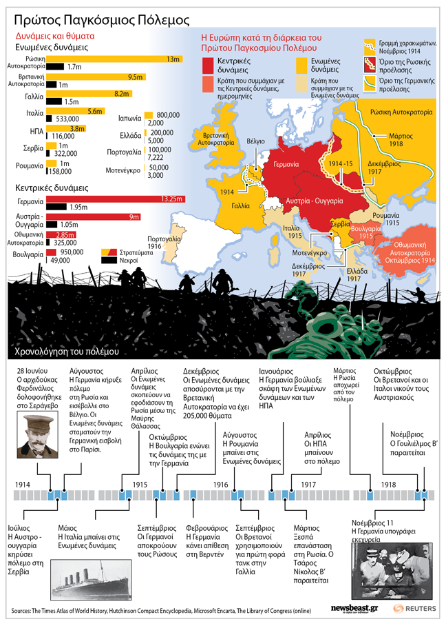Με αφορμή αυτό το γεγονός το Reuters παρουσιάζει ένα γράφημα με τις σημαντικότερες στιγμές από τον Πρώτο Παγκόσμιο Πόλεμο.