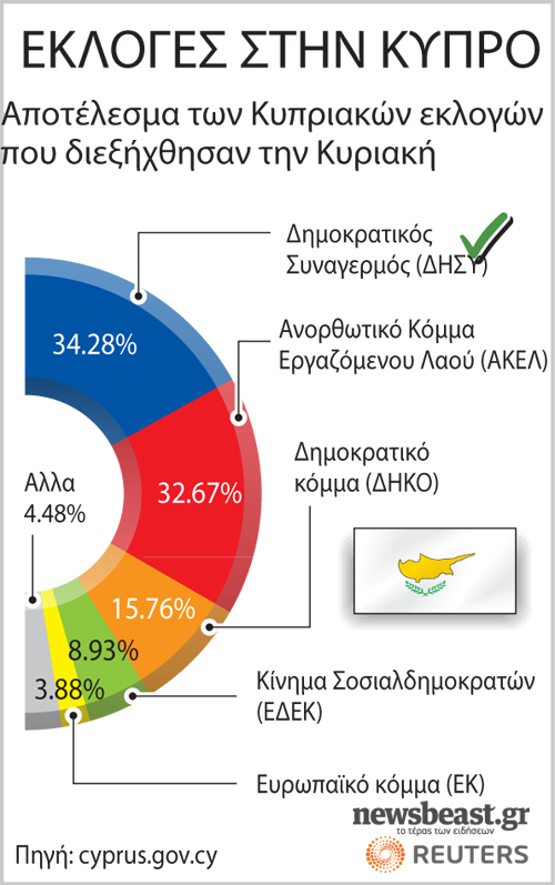 Ωστόσο, το ΑΚΕΛ και το ΔΗΚΟ, τα δύο κόμματα του κυβερνητικού συνασπισμού που θα τον υποστηρίξουν, διαθέτουν ισοψηφία με όλα τα άλλα κόμματα, δηλαδή μόνο 28 ψήφους.