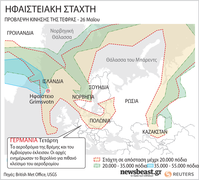 Δύο γερμανικά αεροδρόμια, στη Βρέμη και το Αμβούργο, ακύρωσαν σήμερα τις πτήσεις από και προς αυτά, λόγω της ηφαιστειακής στάχτης που «ταξίδεψε» μέχρι εκεί σήμερα. Οι αρχές παραμένουν σε επιφυλακή ενώ έχουν εκδώσει προειδοποίηση και για ενδεχόμενο κλείσιμο και του αεροδρομίου του Βερολίνου.