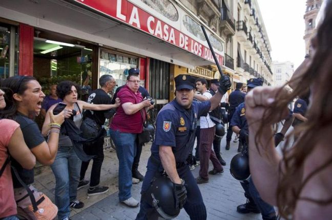 Δεκαοκτώ άνθρωποι τραυματίστηκαν και πέντε συνελήφθησαν σήμερα στη Βαλένθια της νότιας Ισπανίας όταν αστυνομικοί συγκρούστηκαν με διαδηλωτές που συμμετείχαν σε συγκέντρωση του κινήματος των «αγανακτισμένων».