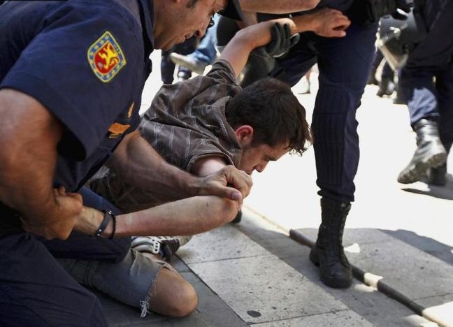 Εκατοντάδες άλλοι ενώθηκαν μαζί τους, αναγκάζοντας την αστυνομία να σχηματίσει ένα «διάδρομο ασφαλείας,» ώστε να μπορέσουν οι βουλευτές να μπουν στο κτίριο. Ορισμένοι διαδηλωτές προσπάθησαν να σπάσουν τον κλοιό των αστυνομικών, οι οποίοι χρησιμοποίησαν τα γκλομπ τους για να τους διαλύσουν, όπως ανέφεραν αυτόπτες μάρτυρες.