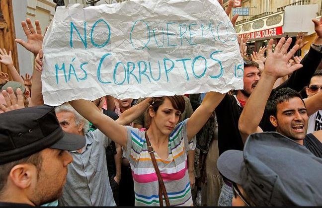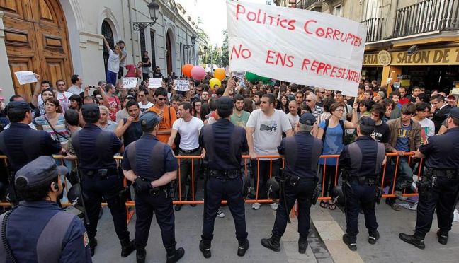 Δεκάδες διαδηλωτές είχαν περάσει τη νύχτα μπροστά από το τοπικό κοινοβούλιο της Βαλένθια αναμένοντας την ορκωμοσία των νέων βουλευτών που αναδείχτηκαν από τις τοπικές εκλογές της 22ας Μαΐου. Οι διαδηλωτές διαμαρτύρονταν για την παρουσία ορισμένων βουλευτών που κατηγορούνται για διαφθορά, όπως ο επικεφαλής της περιφερειακής κυβέρνησης, Φρανθίσκο Καμπς.
