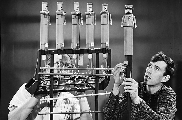 Ο Τζιμ Χένσον επεξεργάζεται τη λειτουργία μηχανισμού που ρύθμιζε τις εκφράσεις των ηρώων του.