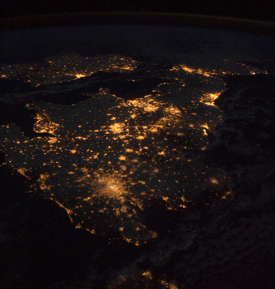 Με τα φώτα των βρετανικών πόλεων να διαγράφουν τα όρια της χώρας, αυτές οι εντυπωσιακές, βραδινές φωτογραφίες τραβήχτηκαν από τον ιταλό αστροναύτη Paolo Nespoli, λίγο πριν αφήσει πίσω του το Διεθνή Διαστημικό Σταθμό, για το ταξίδι της επιστροφής πίσω στη Γη τον περασμένο μήνα.