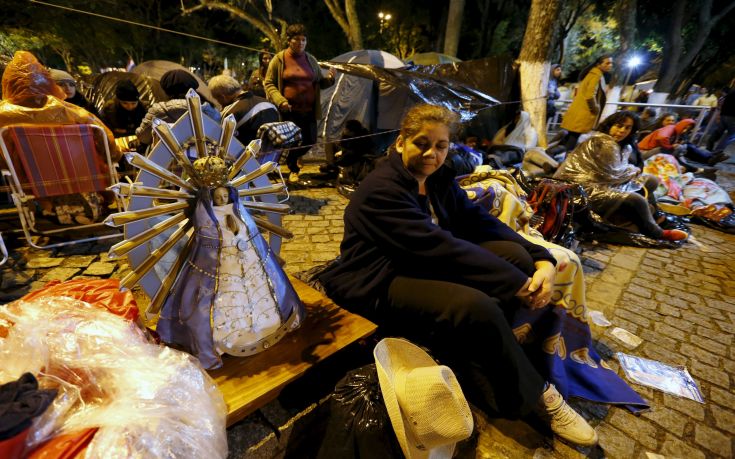 Στο δρόμο πέρασαν τη νύχτα τους εκατοντάδες άνθρωποι στην Παραγουάη περιμένοντας τη θεία λειτουργία παρόντος του Πάπα Φραγκίσκου, στην περιοχή Caacupe, έξω από την πρωτεύουσα Ασουνσιόν.