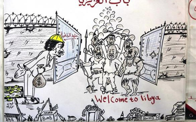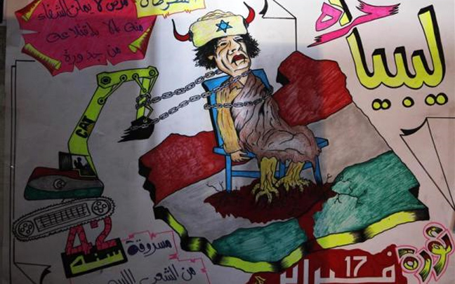 Πηγή έμπνευσης και πρωταγωνιστικό πρόσωπο είναι ο Μουαμάρ Καντάφι σε δεκάδες γελοιογραφίες…