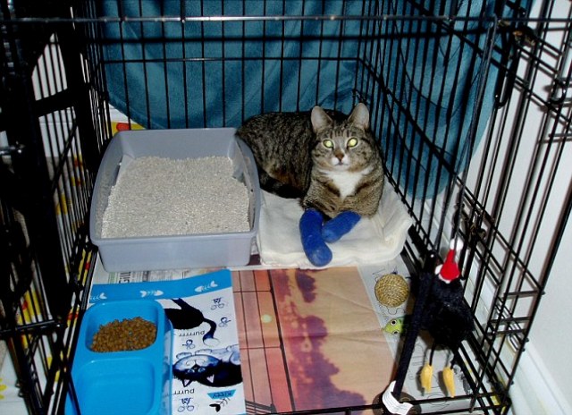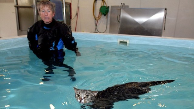 Η ιδιοκτήτρια περιγράφει την πρώτη φορά που η γάτα τοποθετήθηκε μέσα στην ειδικά διαμορφωμένη πισίνα και θυμάται χαρακτηριστικά το πόσο τρομοκρατημένη ήταν. Τώρα πια μετά από δέκα συνεδρίες, η Moggy δείχνει να απολαμβάνει το κολύμπι, ενώ έχει αρχίζει να βάζει βάρος και στο δεξί μπροστινό της πόδι. Σύμφωνα με τη θεράποντα γιατρό σε λίγο καιρό θα έχει δυναμώσει αρκετά ώστε να καταφέρει να περπατήσει ξανά.