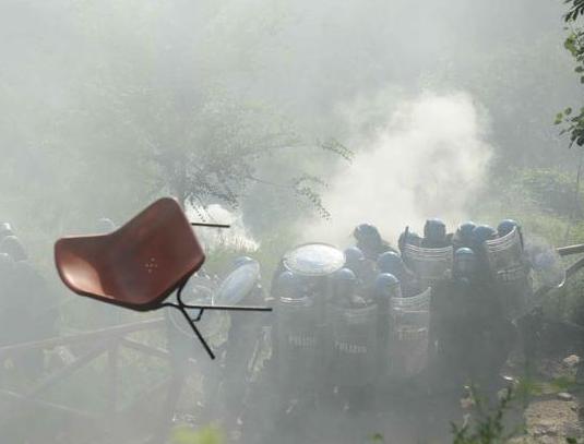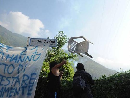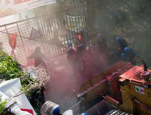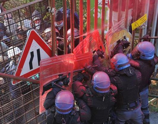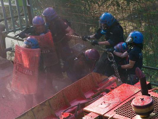 Όπως μεταδίδουν ιταλικά μέσα ενημέρωσης, αστυνομικές δυνάμεις έκαναν χρήση τριάντα θωρακισμένων οχημάτων, με ρίψη δακρυγόνων, αναγκάζοντας, έτσι, τους κατοίκους να απομακρυνθούν από την περιοχή.