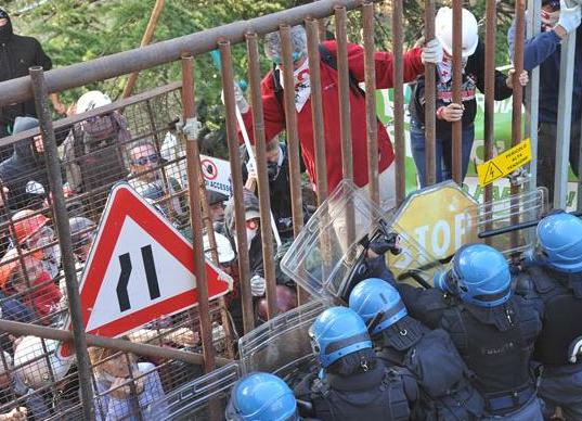 Οι κάτοικοι και τα μέλη των ακροαριστερών ‘κοινωνικών κέντρων», οργανωμένοι σε επιτροπές «Νο Tav» («όχι στα τραίνα υψηλής ταχύτητας») είχαν καταλάβει την περιοχή στην οποία έχει προγραμματισθεί να αρχίσουν να λειτουργούν τα εργοτάξια, επιμένοντας ότι το συγκεκριμένο έργο πρόκειται να καταστρέψει την οικολογική ισορροπία της όλης περιοχής.