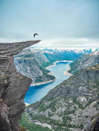 Ο νεαρός σκαρφάλωσε στην άκρη ενός βράχου που έχει ονομαστεί Trolltunga- «γλώσσα του νάνου»- στη Νορβηγία και έκανε και τούμπα στον αέρα.