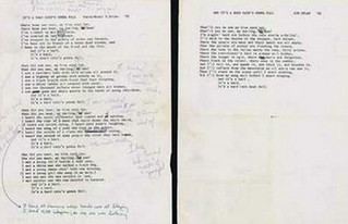 Ένα πρωτότυπο προσχέδιο των στίχων του Μπομπ Ντίλαν για το τραγούδι του «A Hard Rain’s A-Gonna Fall», δημοπρατεί ο οίκος sotheby’s στο Λονδίνο στις 29 Σεπτεμβρίου (εκτίμηση πώλησης 150.000-200.000 λίρες).
