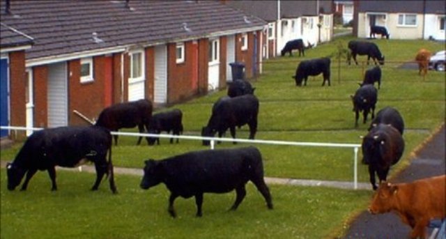 Είκοσι αγελάδες το έσκασαν από το κοπάδι τους και αποφάσισαν να κάνουν βόλτες στους δρόμους ενός χωριού στην Ουαλία, του Tredegar. Δεν αρκέστηκαν όμως μόνο σε έναν ήρεμο περίπατο, αλλά αποφάσισαν πως το γρασίδι και τα παρτέρια μπροστά από τα σπίτια θα αποτελούσαν μοναδικής γεύσης φαγητό.