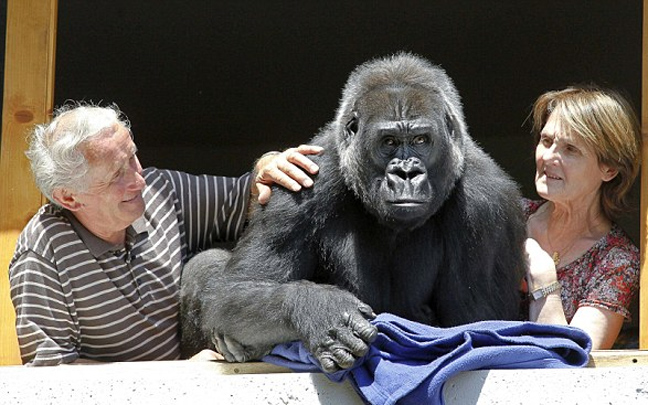 Ο θηλυκός γορίλας νιώθει πολύ άνετα με την παράξενη συγκατοίκηση με τους γονείς της και μάλιστα δεν είναι λίγες οι φορές που εκφράζει πολύ θερμά την αγάπη της δίνοντας φιλιά και αγκαλιάζοντας το ζευγάρι.