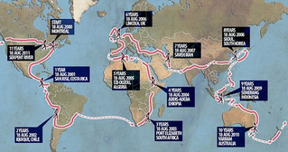 Το ταξίδι του κράτησε έντεκα χρόνια και διένυσε συνολικά 75.500 χιλιόμετρα. Χάλασε 54 ζευγάρια παπούτσια.