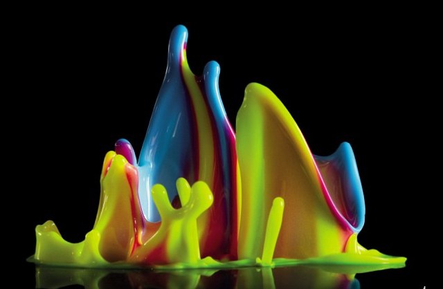 Οι παρακάτω φωτογραφίες όσο και αν μοιάζουν με περίτεχνα χρωματιστά γλυπτά, στην πραγματικότητα είναι φωτογραφίες από χρωματιστές κηλίδες απλωμένες σε μία μεμβράνη πάνω από ένα ηχείο.