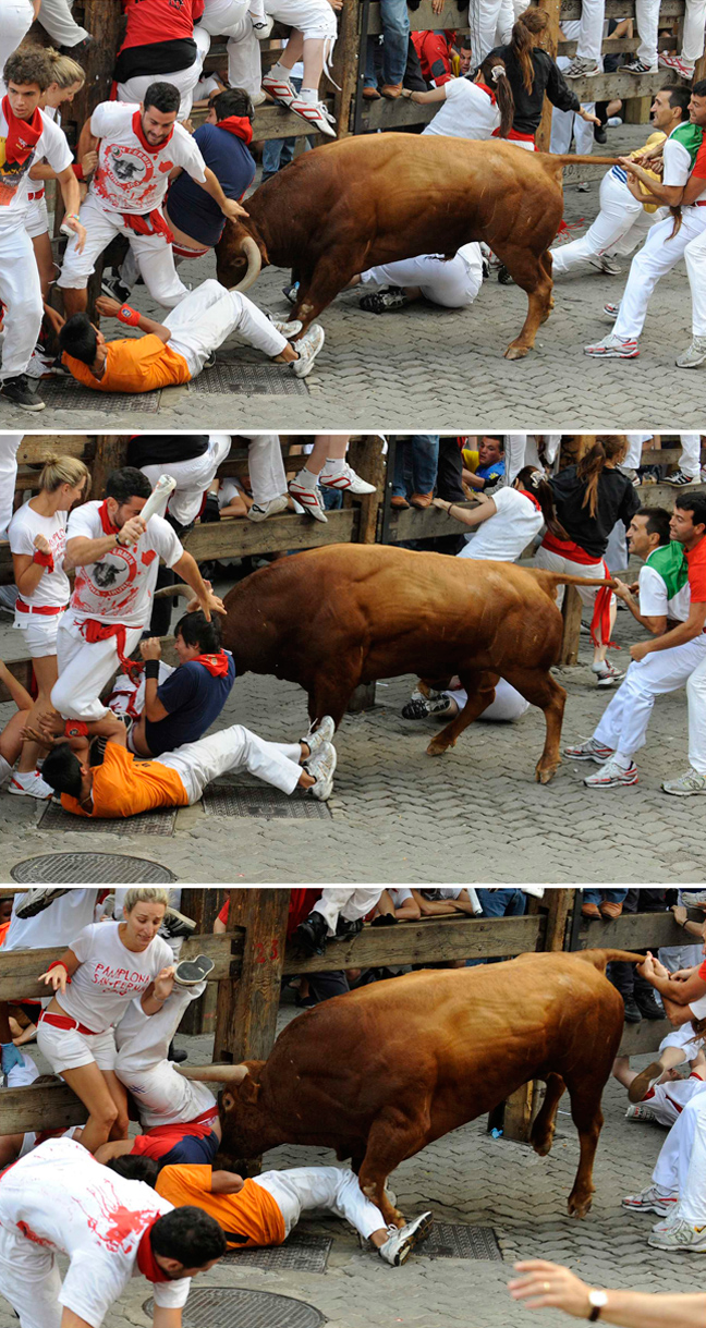 Το πάθημα δεν έγινε μάθημα για τον σερβιτόρο από τη Χιλή που μάλλον είναι εθισμένος σ’ αυτό το επικίνδυνο για τους ανθρώπους και βασανιστικό για τα ζώα τρέξιμο με τους ταύρους που διοργανώνεται κάθε χρόνο στους δρόμους της Παμπλόνα.