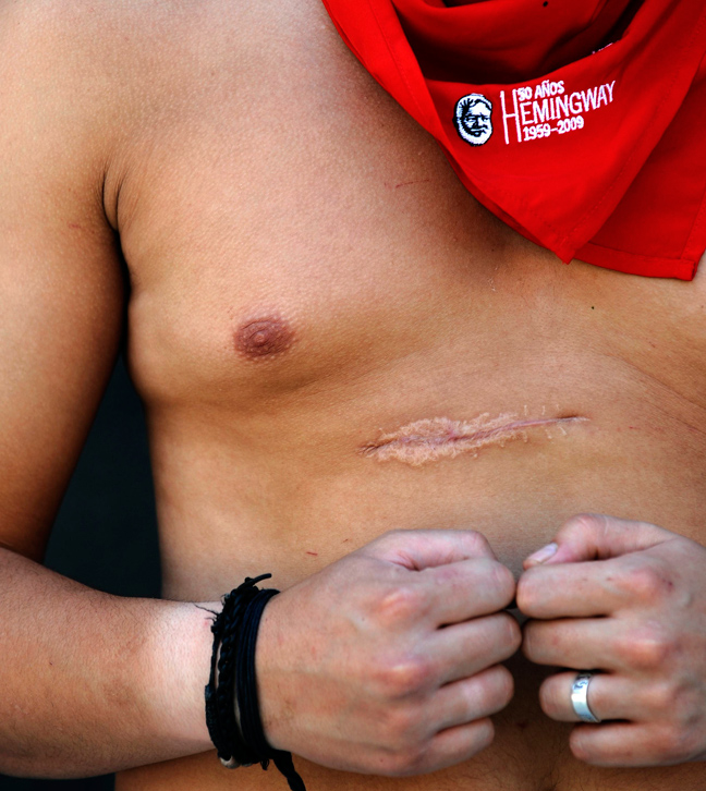 Ο Alonso Ceardi έφτασε μία ανάσα από το να αποχαιρετήσει τον μάταιο τούτο κόσμο όταν ένας ταύρος μισού τόνου τον «κάρφωσε» στο στήθος κατά τη διάρκεια του Φεστιβάλ του Σαν Φερμίν στην Παμπλόνα της Ισπανίας, πέρσι τον Ιούλιο.