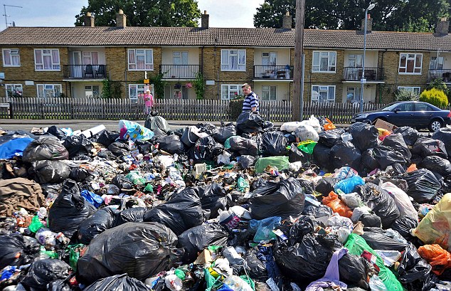 Εκατομμύρια σακούλες σκουπιδιών είναι στοιβαγμένες έξω από τις αυλές των σπιτιών των κατοίκων της πόλης Σαουθάμπτον στην Αγγλία.