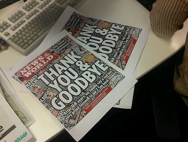 «Είναι μια ημέρα που εμείς που εργαζόμαστε στη News of the World είμαστε συντετριμμένοι. Είμαι υπερήφανος για τους συναδέλφους μου, που συνέχισαν αυτή την εβδομάδα κάτω από πολύ δύσκολες προσωπικές και επαγγελματικές συνθήκες, προσπάθησαν με μεγάλο επαγγελματισμό» σημείωσε ο δημοσιογράφος Νταν Γούτον.