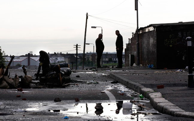 Σκουπίδια και συντρίμμια «κοσμούν» σήμερα τους δρόμους του Μπέλφαστ, μετά τα επεισόδια που ξέσπασαν χθες ανάμεσα στην αστυνομία και νεαρούς Καθολικούς.