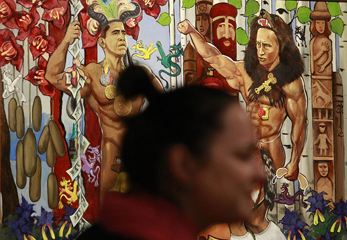 Ο πίνακας όμως που σπάει όλα τα ρεκόρ δημοτικότητας είναι δημιουργία της Vera Donskaya-Khilko και φέρει τον τίτλο «Wrestling», απεικονίζει τον Ομπάμα και τον Πούτιν να μονομαχούν με τα υπερμεγέθη γεννητικά τους όργανα.