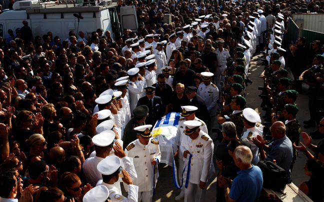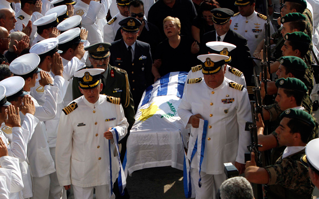 Η σορός του αδικοχαμένου διοικητή ήταν σκεπασμένη με τις σημαίες της Κύπρου και της Ελλάδος, την μετέφεραν αξιωματικοί του Ναυτικού και άγημα της Εθνικής Φρουράς απέδιδε τιμές.
