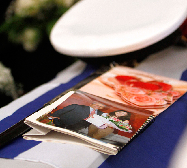 Η νεκρώσιμη ακολουθία εψάλη στον ιερό ναό Αγίου Γεωργίου Κοντού στη Λάρνακα, προϊσταμένου του Επισκόπου Καρπασίας Χριστοφόρου. Στην είσοδο της εκκλησίας υπήρχαν τρία πλακάτ που έγραφαν:
