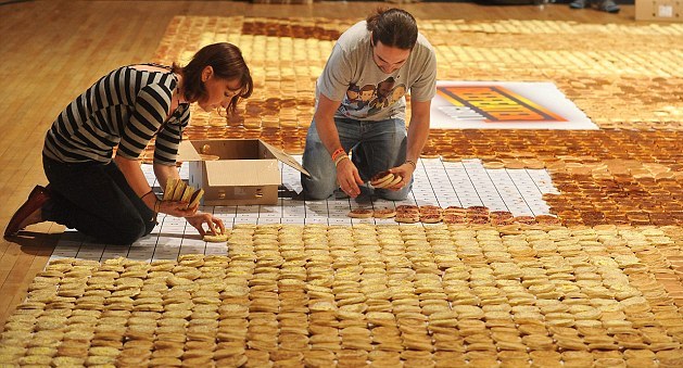 Εκτός από τις τηγανίτες χρειάστηκαν 100 βαζάκια μαρμελάδας, ενώ εργάστηκαν για τη δημιουργία του… λαχταριστού μωσαϊκού περίπου 12 άνθρωποι!