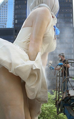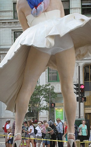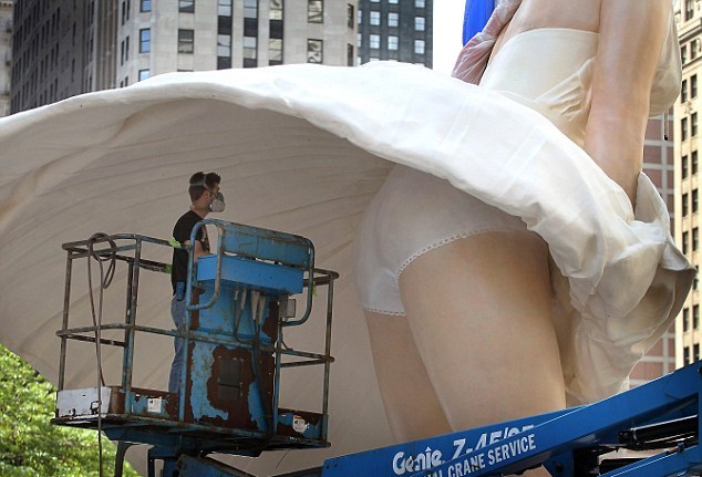 Το κεφάλι του αγάλματος είναι καλυμμένο, αλλά αυτή η πόζα προδίδει ότι το άγαλμα που φτιάχνεται στο Pioneer Court στο Σικάγο είναι αναπαράσταση της θρυλικής Marilyn Monroe!