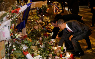 Αργά χθες τη νύχτα ο Ομπάμα, συνοδευόμενος από τον Γάλλο πρόεδρο Φρανσουά Ολάντ και τη δήμαρχο του Παρισιού Ανν Ινταλγκό, επισκέφθηκε τον πολυχώρο Μπατακλάν και άφησε ένα λουλούδι στη μνήμη των θυμάτων των επιθέσεων των τζιχαντιστών.