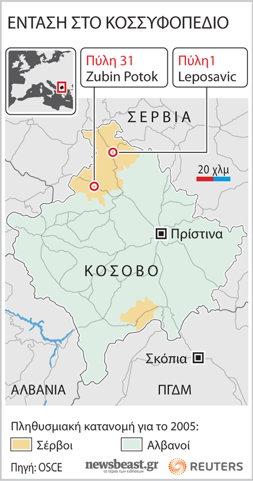 Ένταση επικρατεί στο βόρειο τμήμα του Κοσόβου, όπου οι ειδικές δυνάμεις της αστυνομίας προσπαθούν να θέσουν υπό τον έλεγχό τους δύο συνοριακές διαβάσεις στα διοικητικά σύνορα με τη Σερβία.