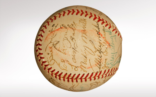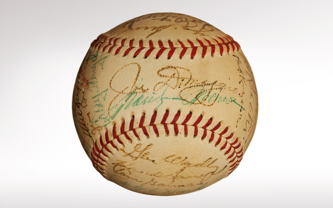 Το μπαλάκι έχει επίσης την υπογραφή του Joe DiMaggio, συζύγου της Marilyn και θρυλικό παίκτη των New York Yankees.